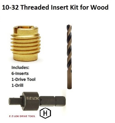 E-Z LOK Threaded Insert for Hard Wood, 303 Stainless E-Z Knife Threaded Insert Installation Kit for Hard Wood - Brass - 1/4-20 . You can drill and tap using regular standard tools. The 10-24 and 10-32 inserts are very large and the hole drilled comes too close to the edges of the neck heel for my tastes.