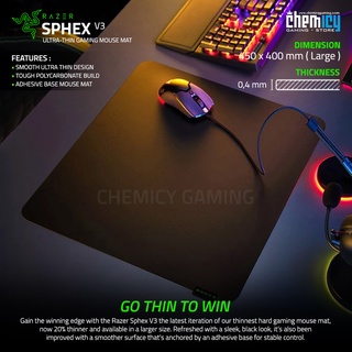 Razer Sphex V3 Razer Sphex V3 Ultra-thin Gaming Mouse Mat Large. Forum Thread . The Razer Sphex V3 is 0.4mm thin, 20% thinner than its predecessor, the Razer Sphex V2.