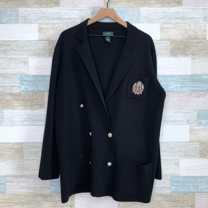 lrl duster Description: AllSaints Blazer Women's 2 Black Knit Cardigan Open Front Merino Wool Classic Snap Button at the back Long Sleeve Tight knit 100% Merino Wool 18.5 inches across pits 20 inches long.