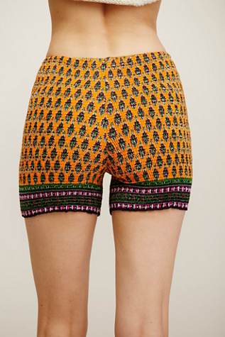 $40.00 previous price $40.00 30% off 30% off previous price $40.00 30% off. Description: These trendy biker shorts feature flattering contrasting panels and an allover multicolor print. FP - Logo detail and zip pocket featured at center back.