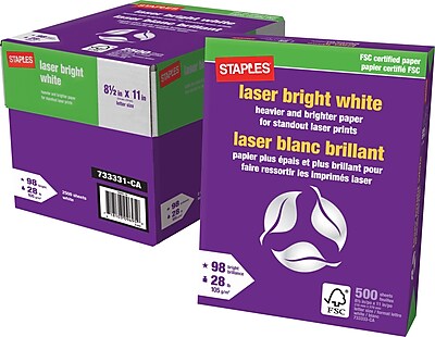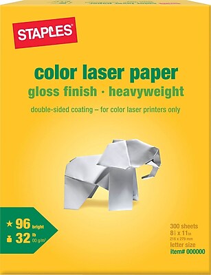 staples printer paper copy inkjet pack multipurpose office fax lb laser letter inch toner recycling label shipping sheets Product Instructions. There seems to be a problem serving the request at this time. Staples glossy 8.5 x 11-inch laser paper boasts a 32-pound paper weight, delivering the thickness needed to create digital photos and marketing materials.