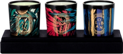 A curated style universe that tailors trends to you. For further information, please read our full Privacy Policy. Orpheon Eau de Parfum Paris in the early 60s. The Saint-Germain quarter was alive w, Somewhere between vanilla and caramel Benjoin scented candle exalts all the richness of the enigm, Inspired by a Greek myth, Eau de Minth reinvents an emblematic perfumery accord, fougre, drawing, Candle set including 3 mini-sized candles in classic Diptyque fragrances: Figuier The warmth of fig, The classic Ambre scent presented in a cognac colored glass container.